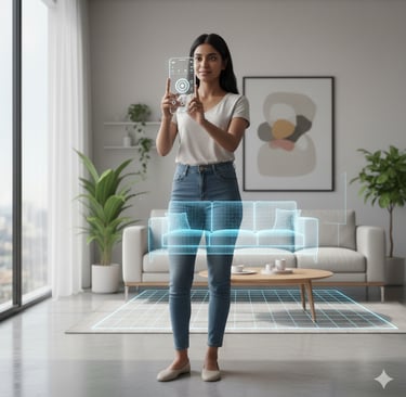 This is where Augmented Reality (AR) plays a game-changing role. It blends digital 3D furniture models into your physical room — allowing you to "try before you buy" using just the phone in your pocket.
